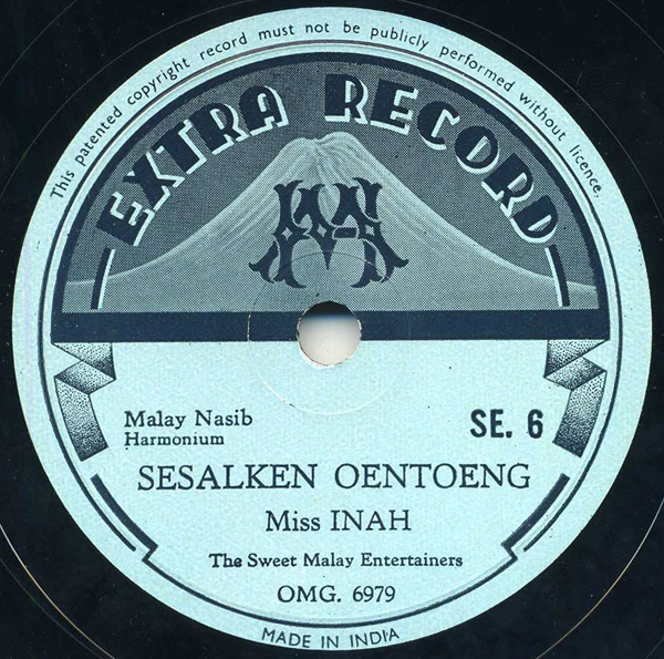 It turns out that the Extra label was based in Palembang, Indonesia, in the south of Sumatra, and was in operation during the early 1940s, before the Japanese occupation. Right off the bat, this clues us in to the fact that the record, despite the band’s name being the Malay Entertainers, is most likely from Indonesia as opposed to Malaysia (the ethnic Malay group is found in both countries). How many records did Extra make? Collectors have traced only nine releases. There may be more, though I’m betting the number is low. It’s also unclear the relationship between Extra and HMV. The matrix numbers on this record (the numbers separate from the catalog numbers on the record, indicating masters and often takes) are clearly HMV matrix numbers. But, we do not know if these songs were also released by HMV, or if Extra was the sole entity releasing these tracks.