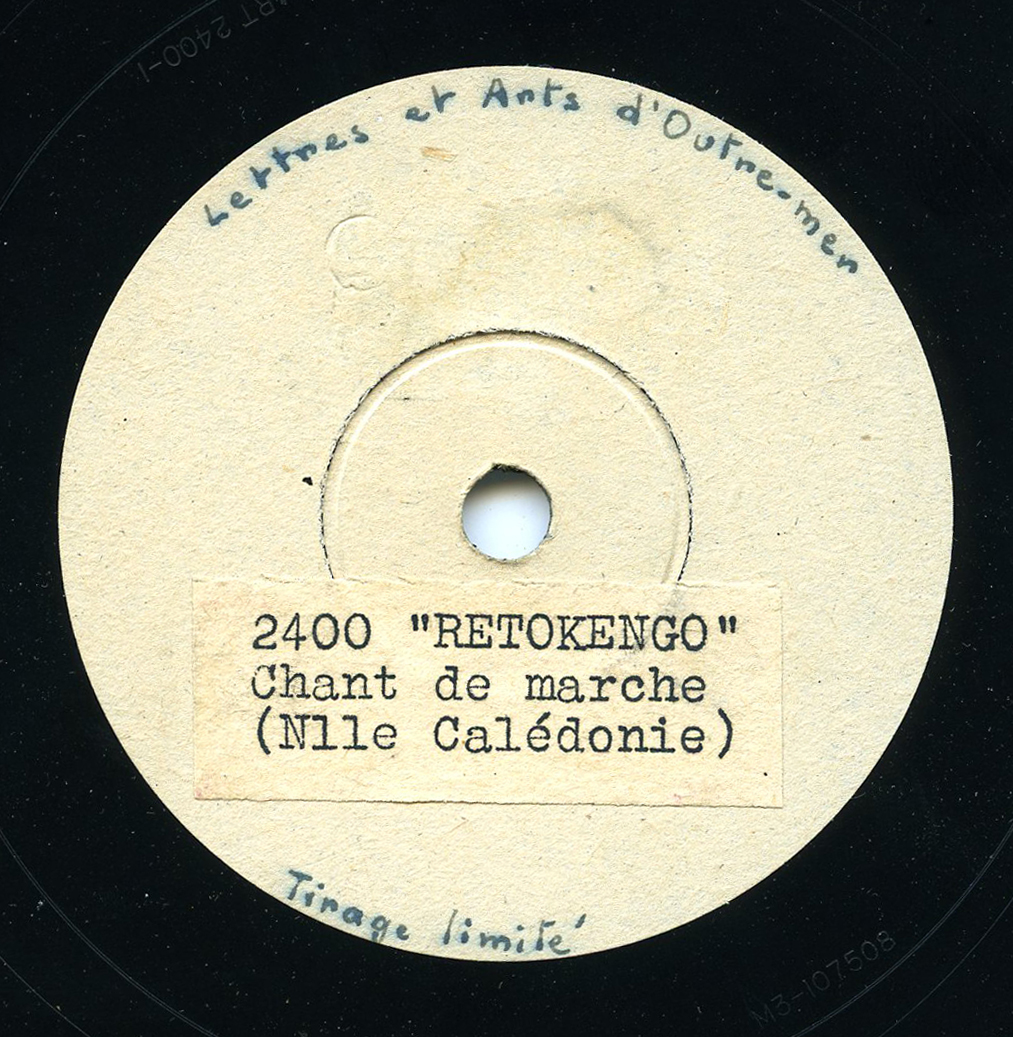 Thanks to a 1946 article by a music student in the Journal de la Société des océanistes, we know something about these recordings. They were not, in fact, recorded for the more well-known Musée de l’Homme in Paris, and in fact were recorded under the auspices of a group called Lettres et Arts d’outre-mer (Humanities and Arts of the French Territories), at the Pathé studios in Paris on November 8, 1945, and issued privately as a two-record “tirage limité” (limited edition) as is written on the label. The recording sessions were organized by a Ms Humbert-Sauvageot and featured a group of indigenous, New Caledonian soldiers who were members of the heralded Battaillon du Pacifique. The choir consisted of: Mahe Warawi (farmer, descendant of the chief Henri Naisseline), Robert Wayawidri (farmer), John Willi (fisherman), Dick Bouama (navigator), Jules Kakou (trader), Emmanuel Dogo (farmer), Auguste Kaalo (pearl fisherman), Boae Kielle (farmer), Leack Schleitz (fisherman), and Pierre Tiaou (farmer), all from either Maré Island, or the main island (Grand Terre).