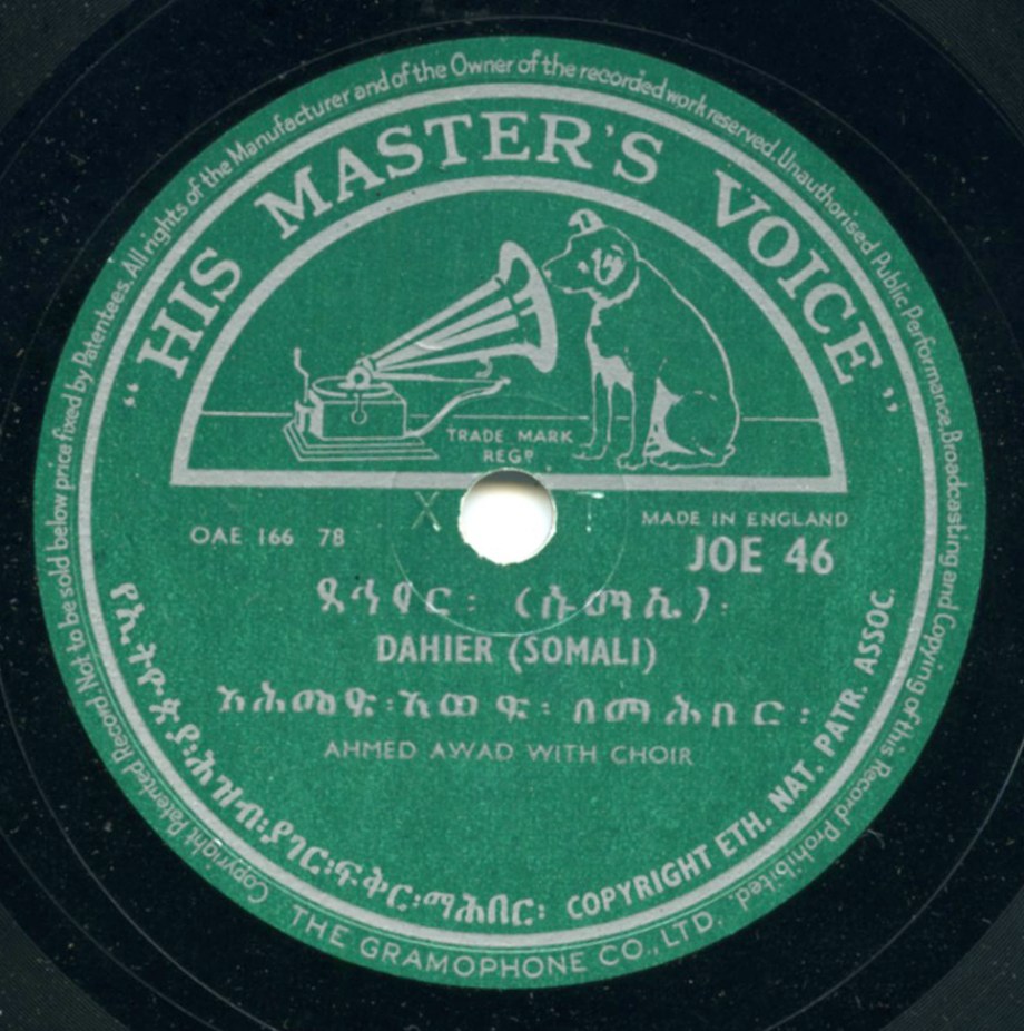 First it should be stated that the sovereign nation of Somalia as it is today did not exist until 1960. Secondly, the Somali people primarily live, and have lived for millennia, across numerous regions along the Horn of Africa, from eastern Ethiopia to northern Kenya. During the 78 rpm era those regions were messily divided up into colonies: Italian Somaliland and British Somaliland (which united to form today’s Somalia); French Somaliland, which existed from 1883-1967 before first becoming a French republic and eventually the nation of Djibouti; and British Kenya, which became an independent republic in 1964. Only Ethiopia had its independence during this period, apart from a much-resisted Italian occupation that lasted from late 1935 to 1941.