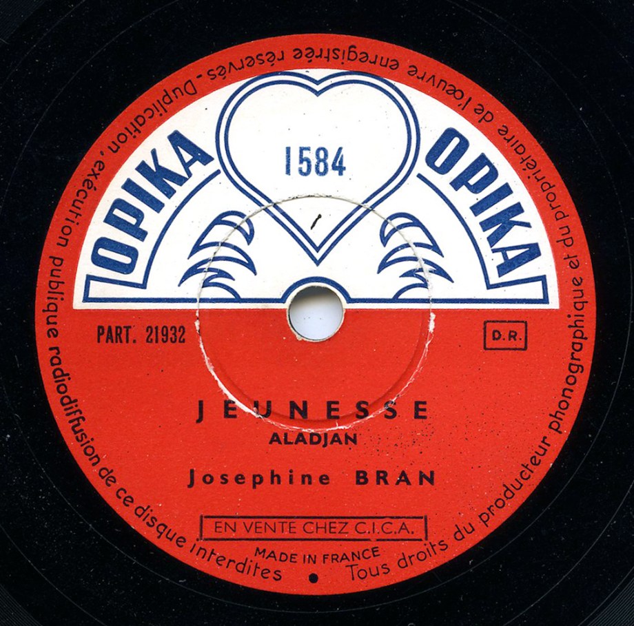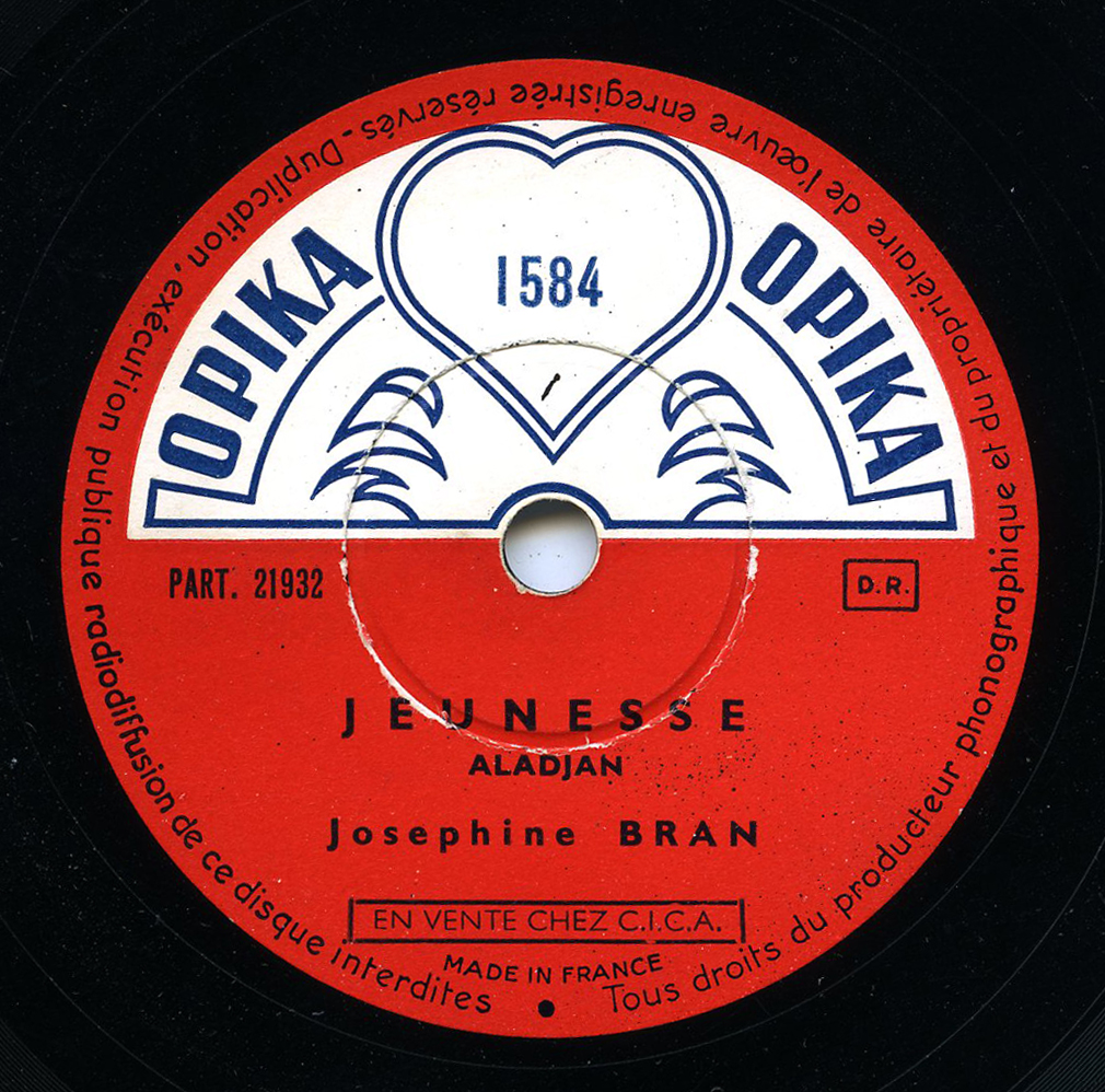 This disc certainly falls into the latter category. Recorded circa 1954 for Opika’s Côte d’Ivoire/”Haute Volta” distributor C.I.C.A. (I believe the short form of a French concern known as the “Compagnie Industrielle de la Côte d’Afrique”), this strange gem by Ms Josephine Bran is in the Alladian language, also known as Alladyan, Allagian, or on this disc as Aladjan. It’s spoken in the southern part of Côte d’Ivoire in about 21 villages today, with a total of about 23,000 speakers. Whether or not it’s an attempt to blend traditional music with a modern backing group in the style found on most uptown Congolese rumbas, or whether this amalgamation found an audience, is hard to say. And who is that playing the Solovox organ, which also turns up on a lot of popular Congolese recordings of the day? According to Congolese music expert Vincent Kenis, it’s Gilbert Warnant, the Belgian recording engineer and talent scout for Opika for most of the 1950s. Vincent also mentioned that the Solovox segment in the middle of the piece is in fact the French children’s song “Nous n’irons plus au bois” (English: “We’ll go to the woods no more”). Did they ever think that someone 60 years later would hear their little secrets? Did the singers have any idea? That is, in part, what’s exciting about it – it’s just different, and opens up many questions.