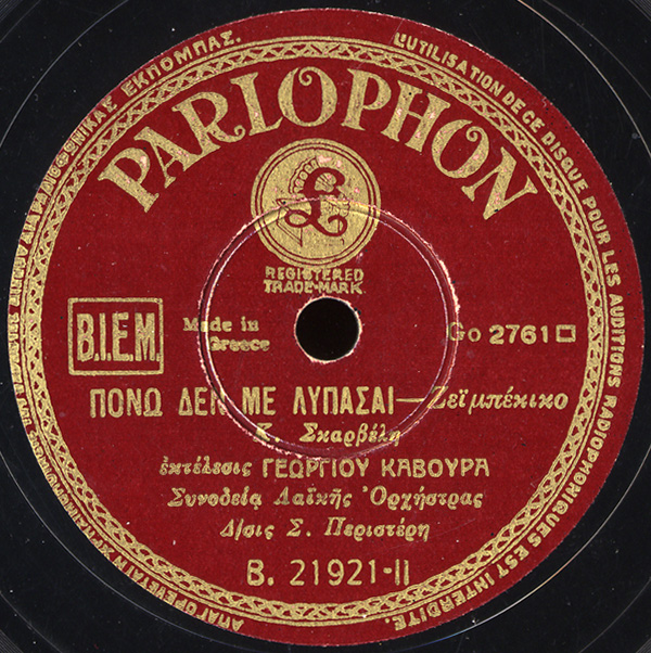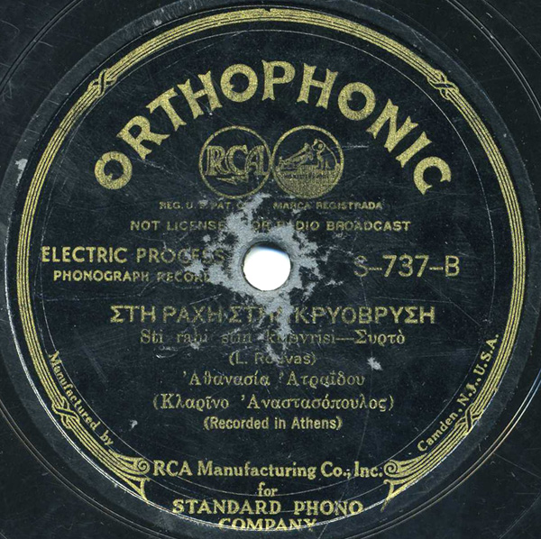 The American Columbia imprint was ravaged by the Depression like many other labels, and it vanished by the early 1930s (after beginning around the turn of the century). By 1939, it had been resurrected with a new red label. And yes, while it is true that it quickly became a profitable bastion of mid-20th century popular music, the red label Columbia, at least in some ways, continued where the old-school Columbia label left off when it came to international folk music. They resurrected Syrian and Egyptian recordings from the 1920s Columbia “X” (for “export”) series, and brought them back to life. They reissued fado records from Portugal, tough to find and out of print for years. And with Greek music – forget about it. The red Columbia label issued loads of amazing rebetika and Greek folk – recordings originally made in Greece and pressed on the European Columbia imprint (by then run by HMV) in the 30s, as well as more current, and often no less rootsy, recordings made in the United States by Greek immigrants.