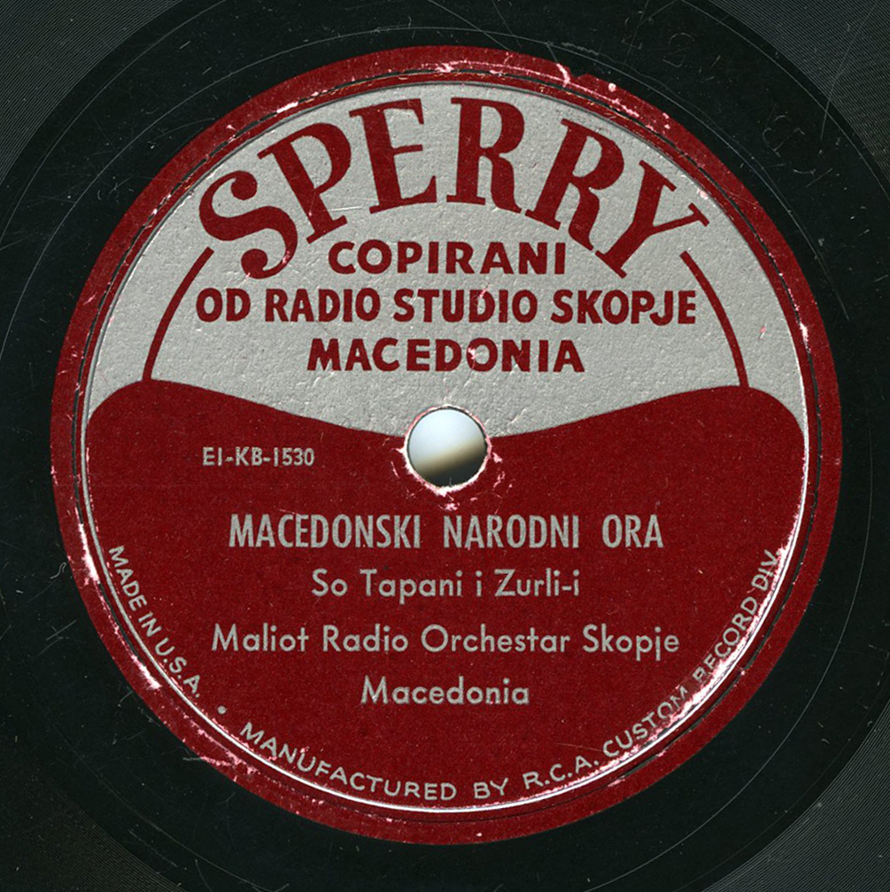 The Sperry label, based at 10625 Shoemaker Street in Detroit, Michigan, was run by Sperry Boge and issued a number of recordings originating from tape, and all from Macedonian groups sponsored by Radio Skopje. Radio Skopje began broadcasting in 1944. I know very little information on Sperry, however, they were in operation for a number of years in the early 1950s, issuing approximately 120 selections on 78 and 33rpm. All of their records were RCA Custom pressings. RCA had three custom pressing plants in the United States including one located in Indianapolis, Indiana, and the pressing number on this disc indicates that this Sperry record was pressed in 1951 – though finding an actual recording date might be more difficult.