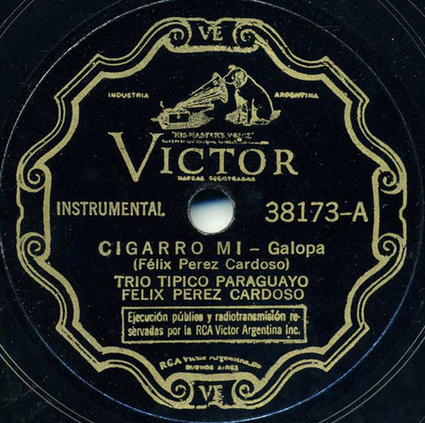To be fair, many of Paraguay’s most important folk musicians during the 78rpm era did not actually record in Paraguay – they left their native country and recorded in Buenos Aires, Argentina, a major recording hub at the time for Victor, Odeon, and smaller labels. Two of the most well-known Paraguayan expatriate musicians were guitarist Agustín Barrios, and arpa Paraguaya player Féliz Pérez Cardozo (also spelled “Cardoso”), who performs this week’s track, accompanied by two guitarists.