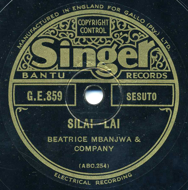 This piece by Beatrice Mbanjwa and her group, accompanied by piano and strummed banjo, was probably recorded around 1939 or 1940 when Gallo’s label was still named Singer. I could find little information on Ms Mbanjwa, except that she did take part in Johannesberg’s massive 1936-1937 “Empire Exhibition” as a performer, along with the Darktown Strutters, and many other musicians.