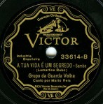 “A Tua Vida É Um Segredo” (Your Life Is A Secret) is a classic, easy-going Brazilian samba, recorded February 1933 in Brazil by the Victor company. Victor was extremely active in South America particularly Argentia, but didn’t become active in Brazil until later, establishing recording hubs and pressing plants in São Paulo and Rio de Janeiro in 1929. Columbia had been recording in Brazil periodically from ca. 1910-12, and before them were the Germans: Odeon, Favorite, and Jumbo, pressing loads of 10.5″ discs. What was recorded in the early days in Brazil, by and large, was not folkloric – it was military bands and operettas, and other music of elites. That said, there were incredible exceptions, such as the string band Grupo Bahianinho, featured on the excellent, now sadly out of print Portuguese String Music: 1908-31 CD on Heritage.