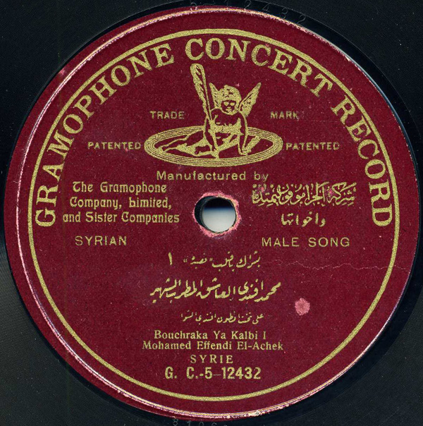 But let’s move on to loftier subjects. Today, we present both sides of a recording made ca. July 1916, by two Arab-Americans: the singer William Kamel, and the enduring Syrian-American violinist, Naim Karakand. There is an oud player as well, which may or may not be Kamel. They perform an aching love song, transliterated here as “Ayn Allaty.” When translated into English, it looks like sort of a strange phrase: “Where is she, the one who…?” This is the fragment of a question Mr. Kamel asks repeatedly. He and Karakand engage in interplay between singer and violinist that is made more delicate by the age and acoustics of the recording. Both musicians give each other plenty of room to perform, but there is no need for flagrant theatrics on either side. For a recording that was made 93 years ago, it still has subtlety.